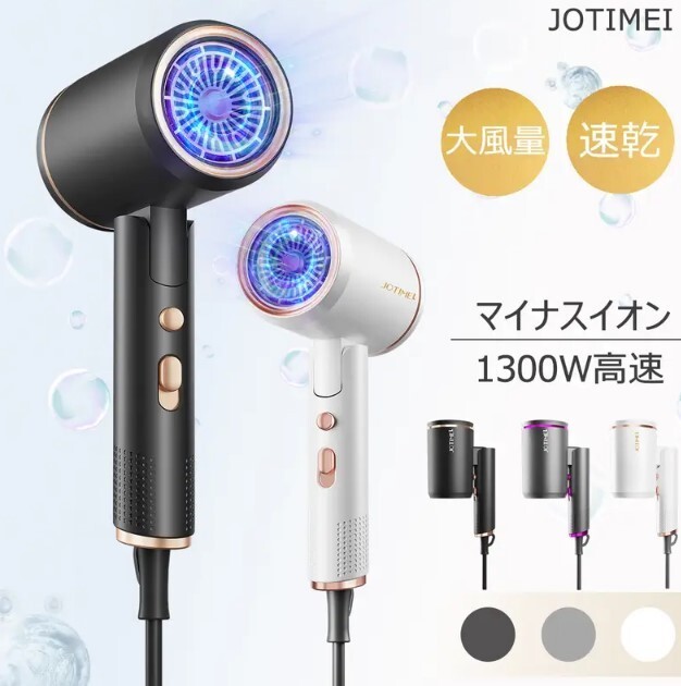 > ドライヤー 大風量 速乾 ヘアドライヤー 1300W 高濃度マイナスイオン ノズル付き 過熱保護機能 軽量 折りたたみ式 携帯ドライヤ