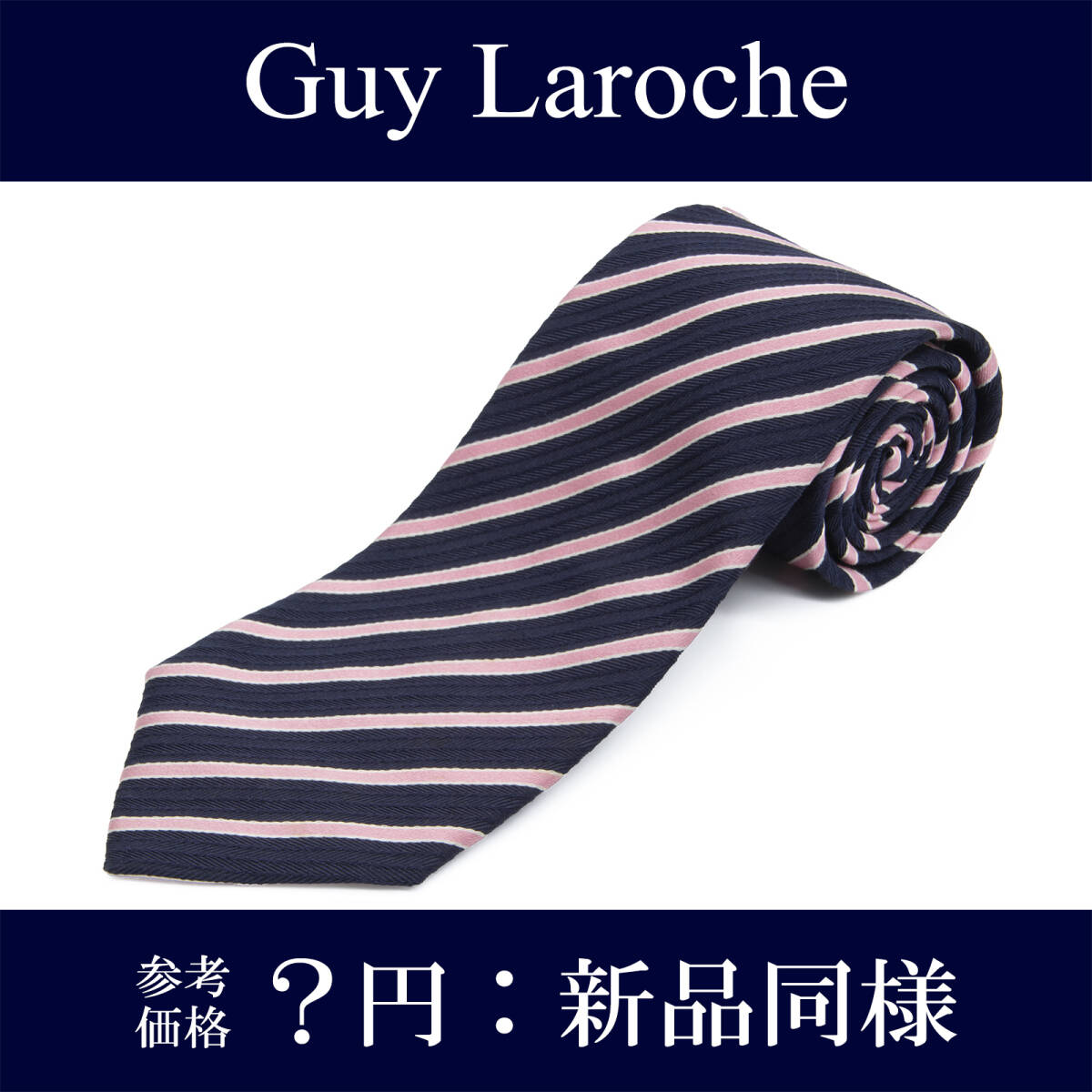 - 送料無料 ギラロッシュ ネクタイ レギュラータイ ジャガード 新品同様 シルク ネイビーブルー ピンク 白 ストライプ ブランド 綺麗 N838