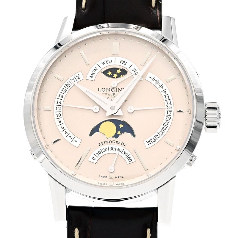 > [3年保証] ロンジン メンズ ロンジン1832 L4.828.4.92.2 箱保 4レトログラード ムーンフェイズ シルバー 自動巻き 腕時計 中古 送料無料
