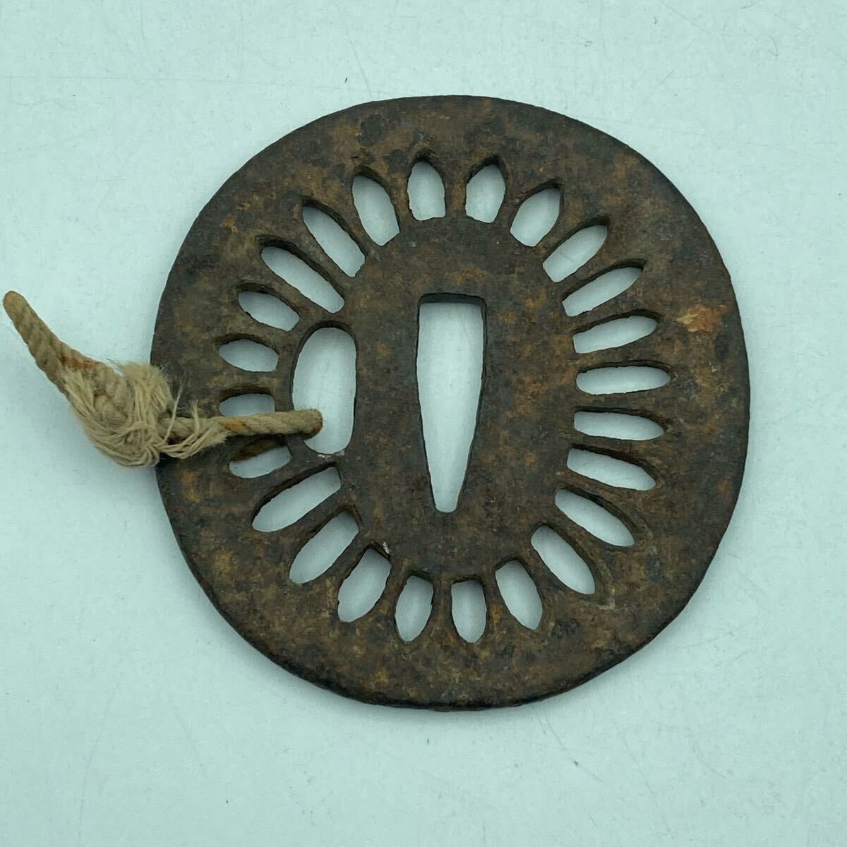> P1216503A 鍔 刀の鍔 刀装具 江戸時代 骨董品 アンティーク 甲冑 時代劇 戦国武将 日本刀 柄 家紋 侍 刀 コレクター 中古品