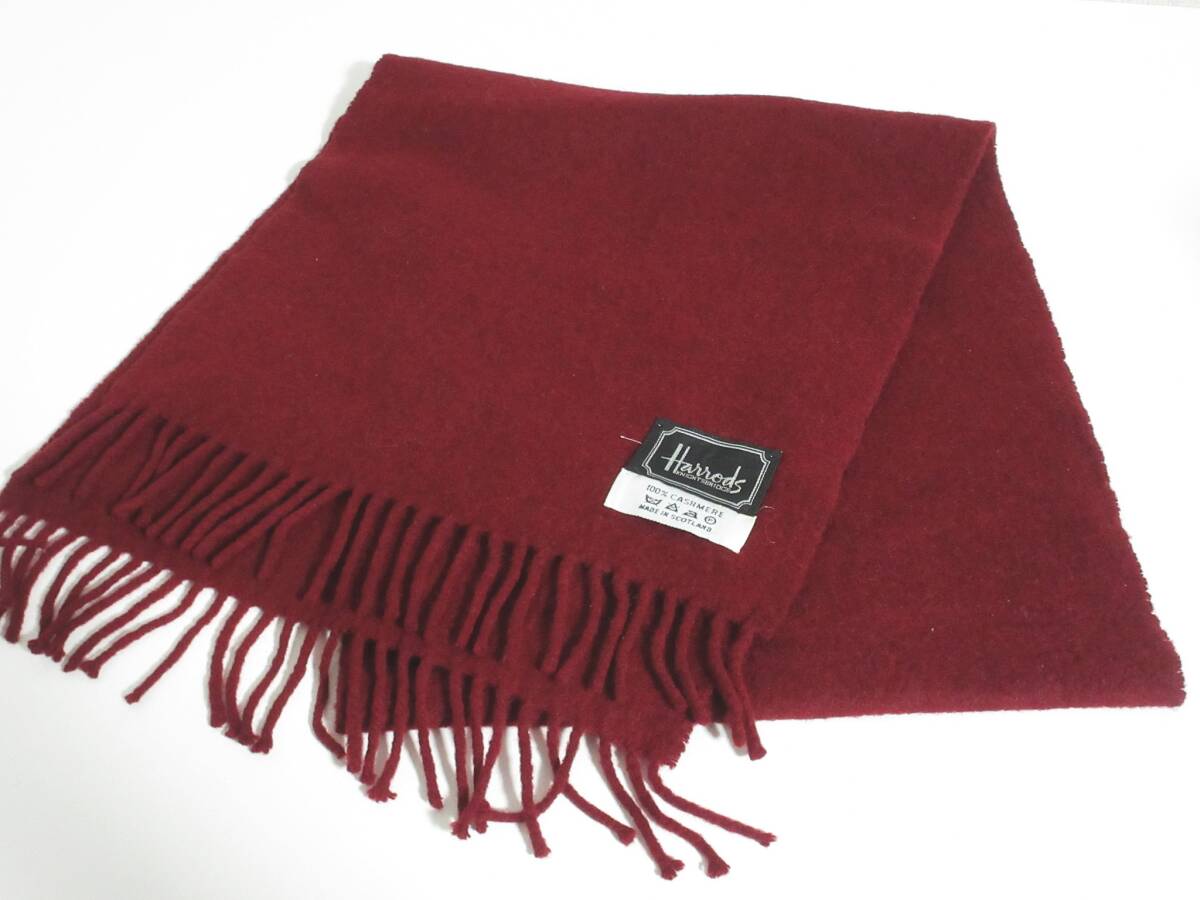 - Harrods ハロッズ スコットランド製 カシミヤ100% マフラー レッド yg7282