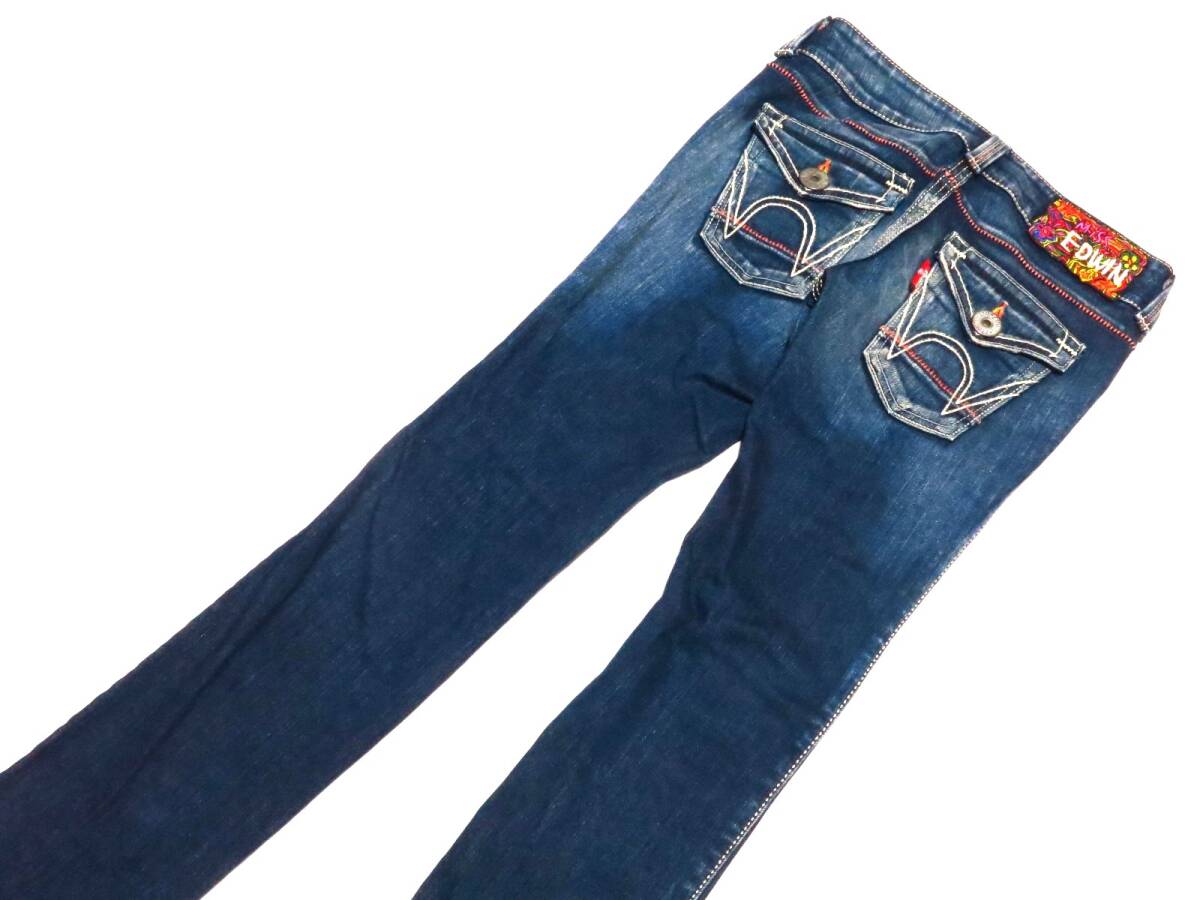 - Miss EDWIN ミスエドウィン レディースデニムパンツ ダメージ加工 裾上げなし 日本製 W29相当(実寸74cm)(出1342-2)