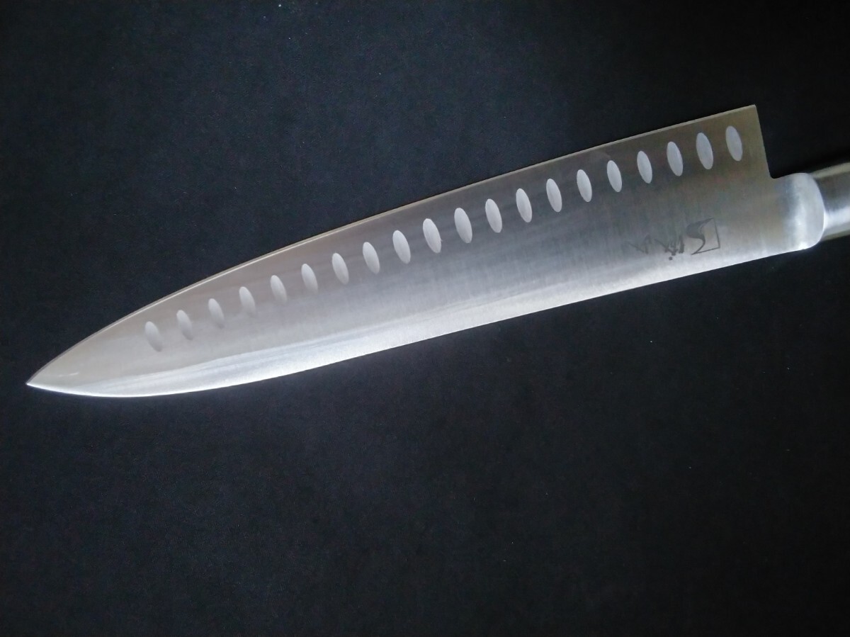 - 城山刃物製作所(堺業務用刃物メーカー直売)八寸 牛刀 ディンプル加工 黒合板柄