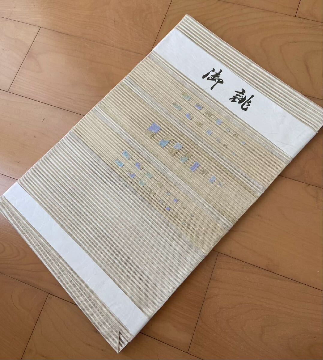 > 【新品未使用】夏帯 名古屋帯 化繊 涼やか縞柄 薄ブルー小紋