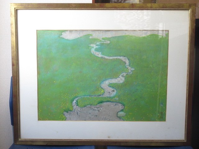 > 直接引取り限定品 真作 谷川義美(谷川燦山)「春の小川」1987年 額装 油彩 大型作品 額寸70.5cm×89cm コレクター放出品