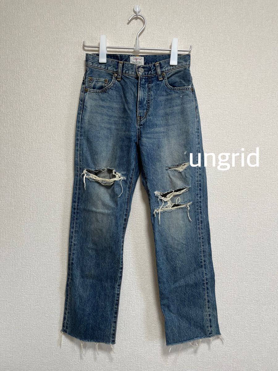 > 最終値下げ!Ungrid アングリッド|カットオフダメージストレートデニムパンツ ブルー系 24|クラッシュ加工 ジーンズ