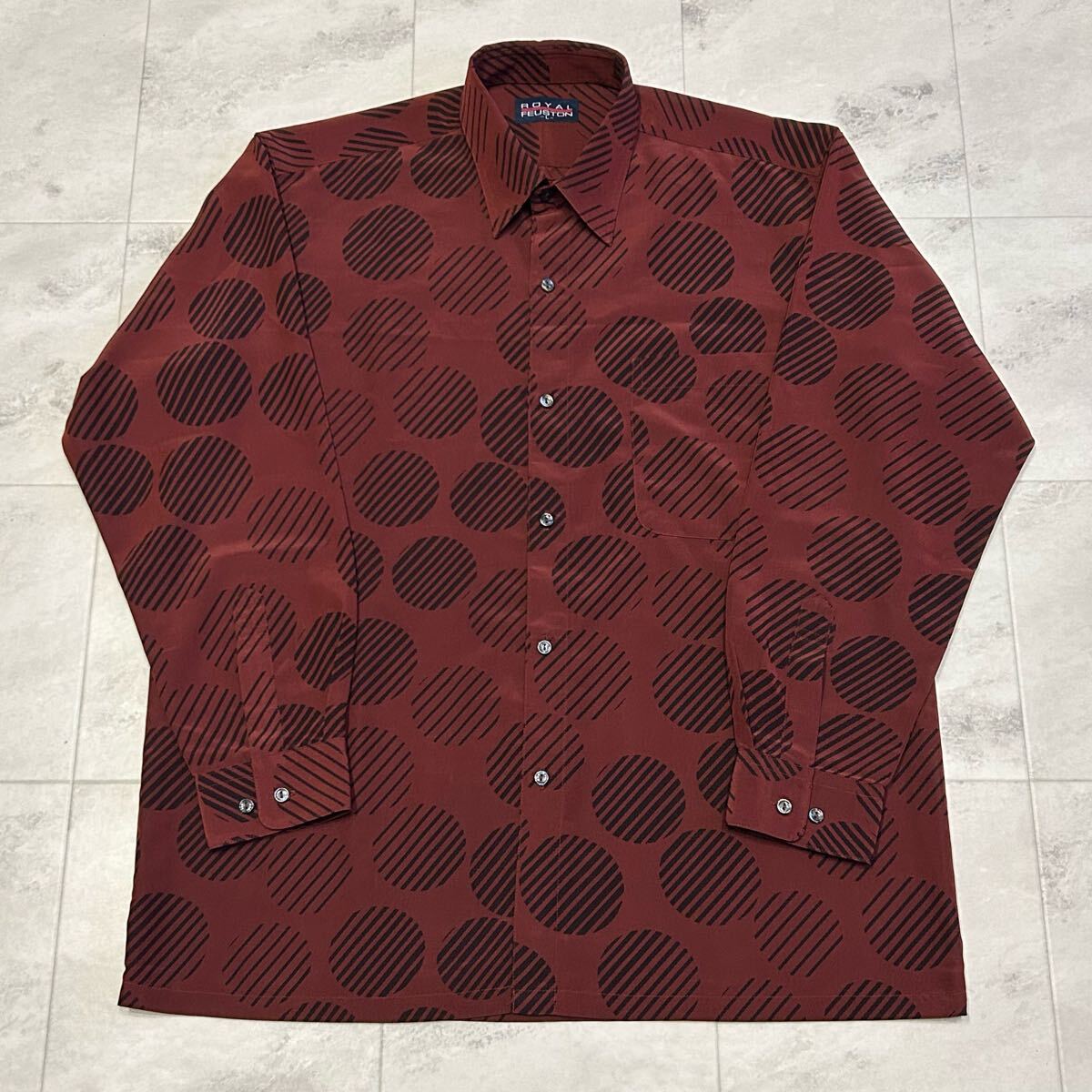> ROYAL FEUSTON 総柄 柄シャツ ドット レトロ アート ビンテージ 長袖シャツ ポリエステル100%