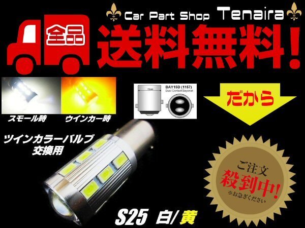 - S25 ツインカラー LED バルブ のみ 1球 白 黄 アンバー 交換用 ウィンカー ポジション ウィポジ 予備 球切れ 修理 メール便送料無料/4