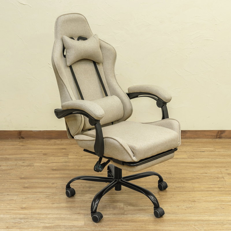 - ゲーミングチェア 布シート デスクチェア オットマン付き リクライニング フラット ベージュ HAY-05(BE)