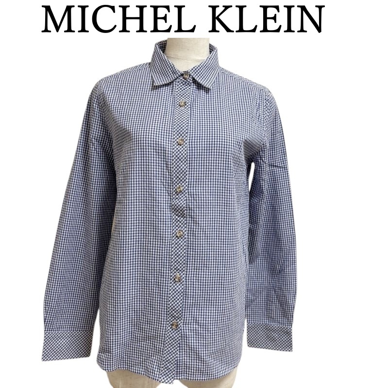 - MICHEL KLEIN ミッシェルクラン レディース チェックシャツ 長袖 レギュラーカラーシャツ ギンガムチェック 青 M