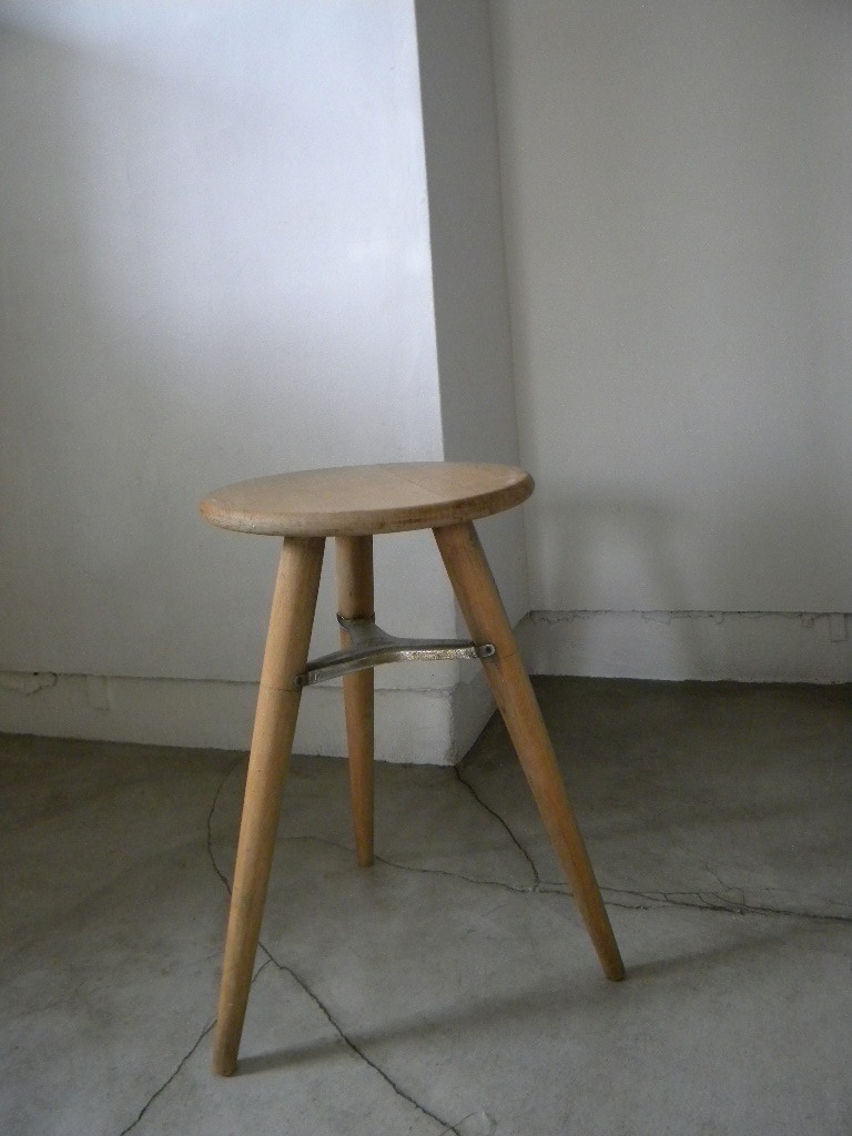 - 国産 Vintage 丸椅子 スツール 3本脚 無垢材 W28㎝×H46㎝ キッチン ダイニング カフェ 店舗 待合 ※ 検索 カリモク 天童木工 秋田木工