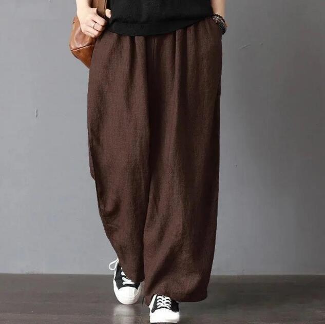 - 人気品サイズ選べる 秋 カジュアル 大人気 ゆったり 無地 綿麻リネン ウエストゴム ワイドパンツ 茶色お色選択可