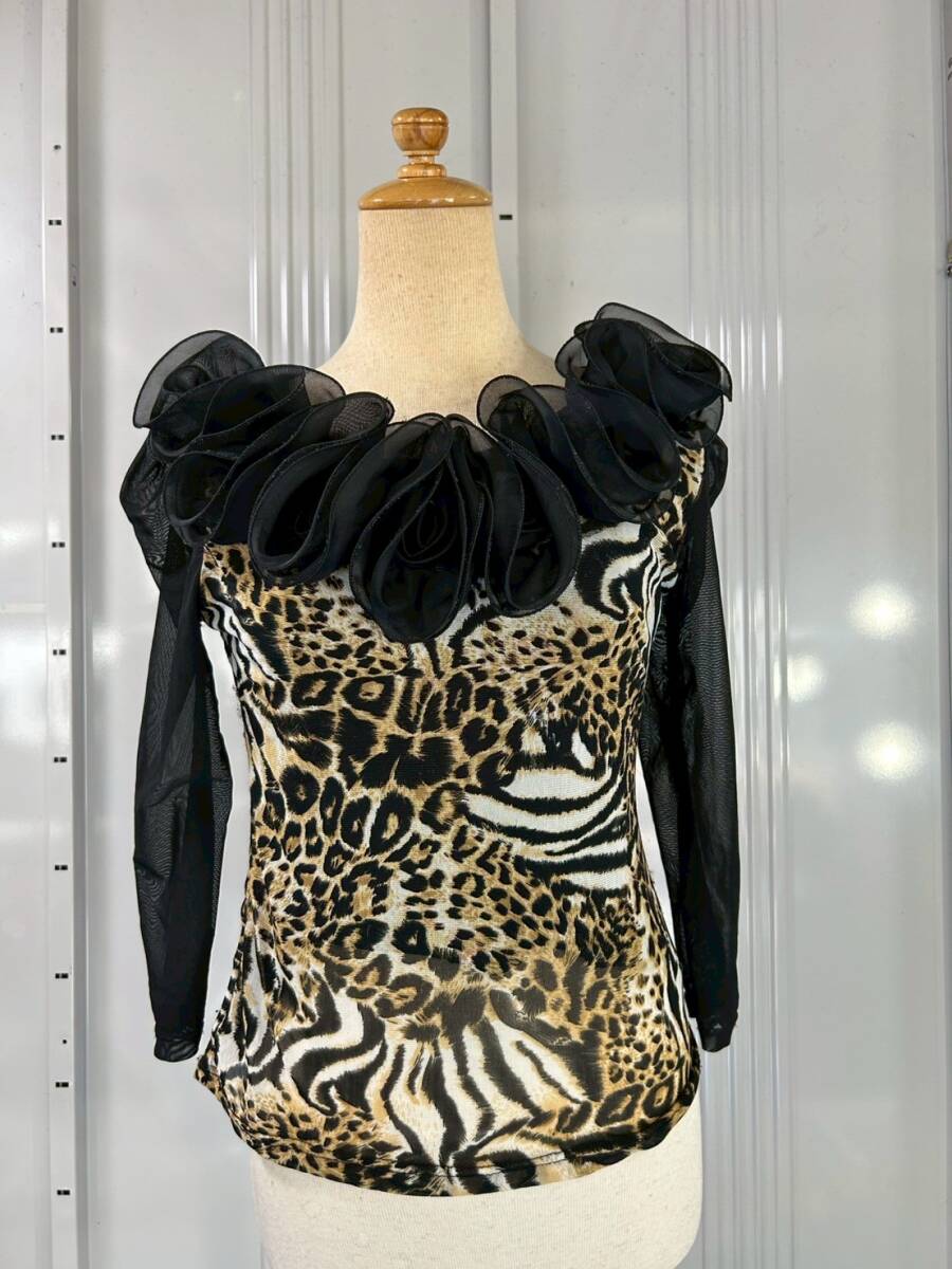 > 【社交ダンス先生放出品 上6-3】上服 オーダーメイド リサイズ品 一般サイズM 今風アレンジ 衣装 レディース 舞台衣装 お店衣装 おしゃれ