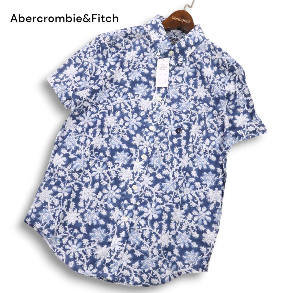 > 【新品 未使用】 Abercrombie&Fitch アバクロンビー&フィッチ 春夏 花柄 総柄★ 半袖 ボタンダウン シャツ Sz.S メンズ