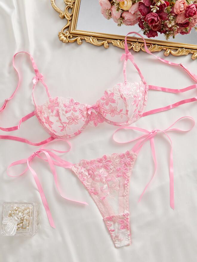 > 279 ブラジャーセットladiesレディース ◇ 魅惑Styleセクシー ◇ 刺繍 上質 pink