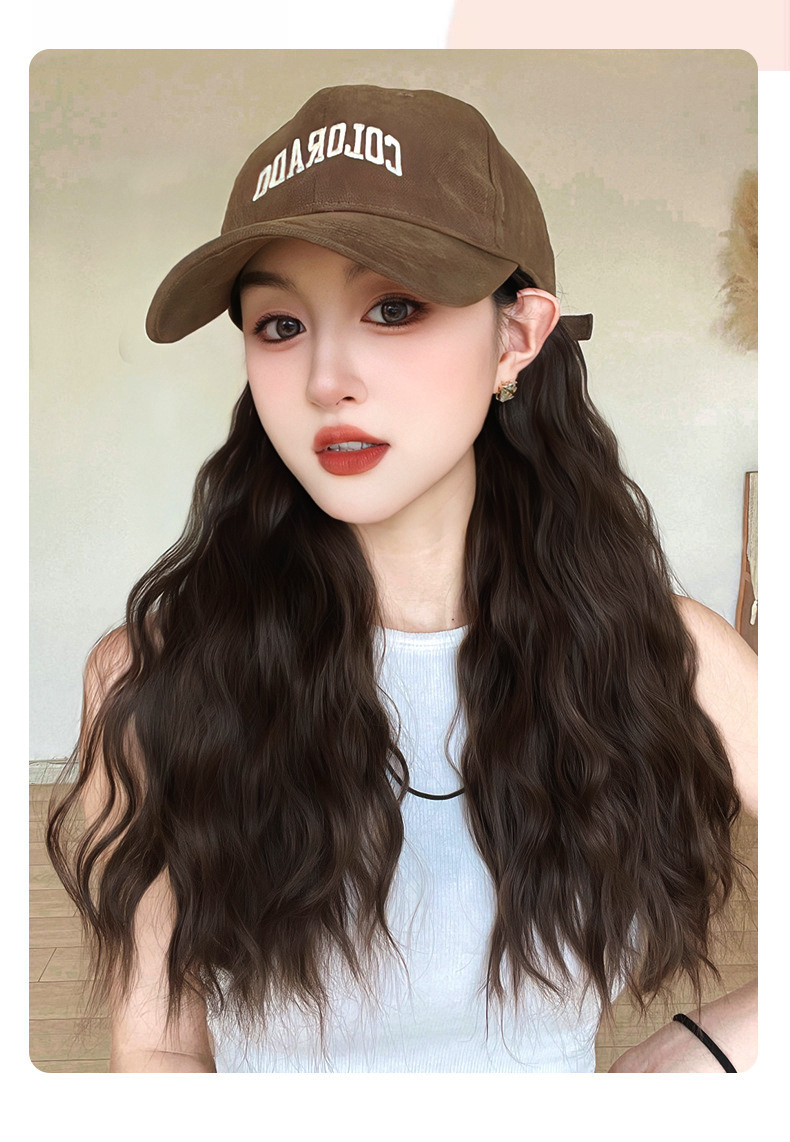 - 【新品!未使用!】ブラウン / 刺繍 アルファベット キャップ付ウイッグ ブラウン ロング かつら