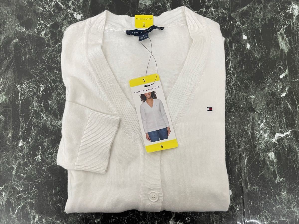 - TOMMYHILFIGER トミーヒルフィガー レディース 長袖 カーディガン S 白 ホワイト シンプル ロゴ