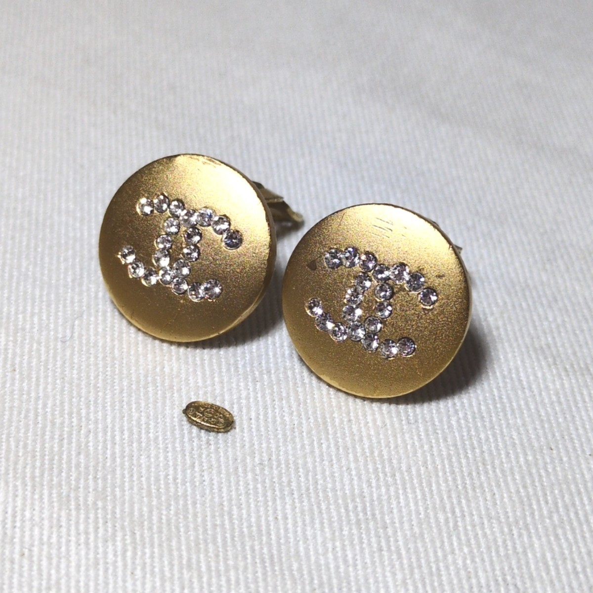 - シャネル CHANEL ゴールド系 ココマーク ラインストーン イヤリング 00A