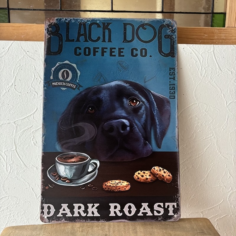 - ブリキ看板 Black Dog Coffee社 ラブラドールレトリーバー 犬 海外直輸入