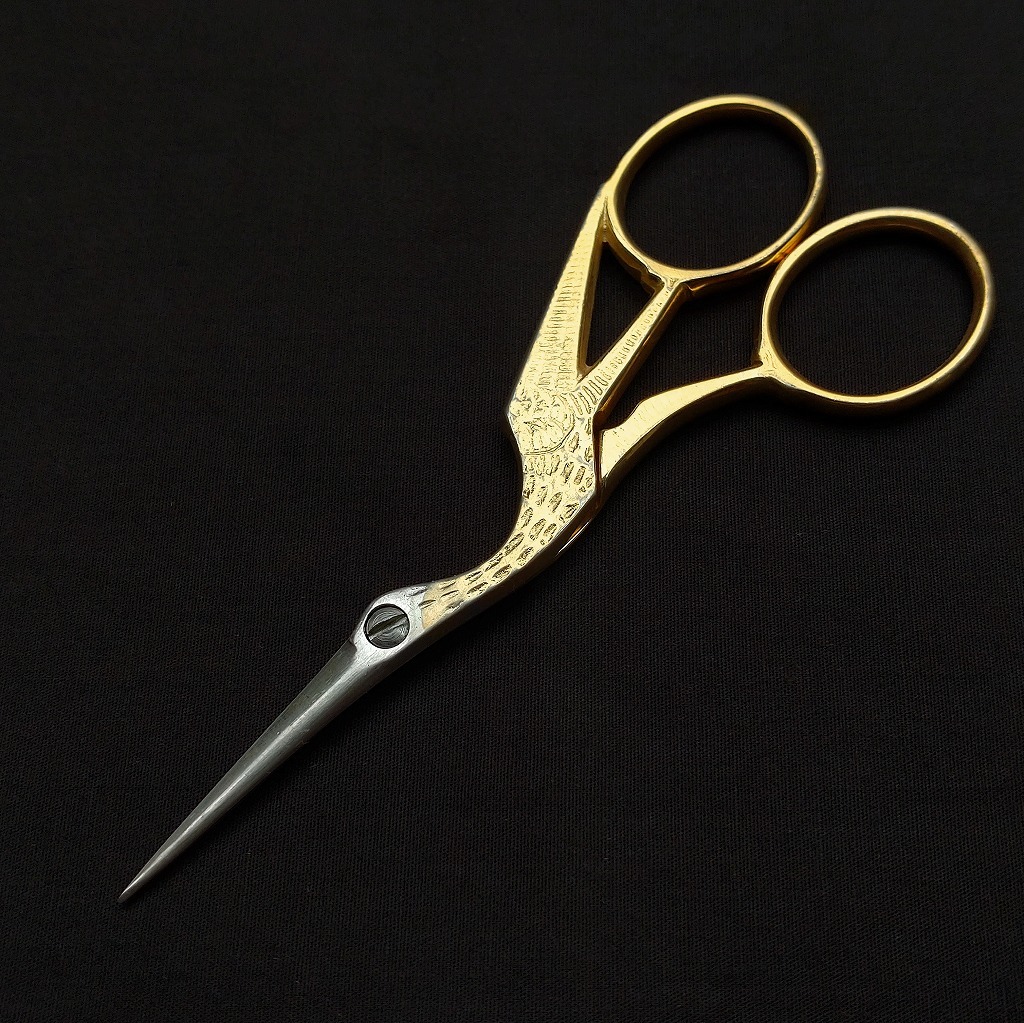 - 刺繍鋏 VICTRIA ビクトリア コウノトリ型 ゴールドカラー 全長約115㎜ 糸切鋏 小鋏 刺繍ばさみ Embroidery scissors【6178】
