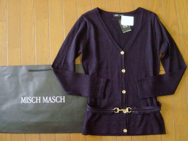 - ◆新品ミッシュマッシュ◆ウール混 ベルト付 長袖カーディガン紺