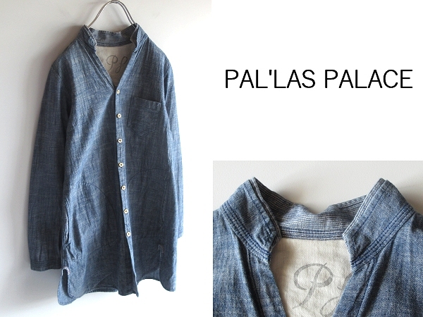 > Pallas Palace パラスパレス コットン シャンブレー スタンドカラー 立ち襟 チュニック シャツ 2 インディゴ 日本製