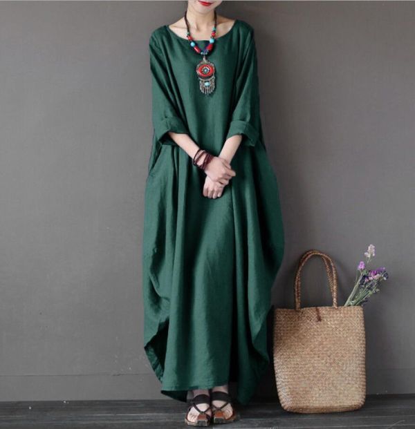- 新入荷*5色 カジュアル ナチュラル 綿麻 ワンピース 大きいサイズ 大人気 体型カバー コットンリネン マキシロングワンピース * グリーン