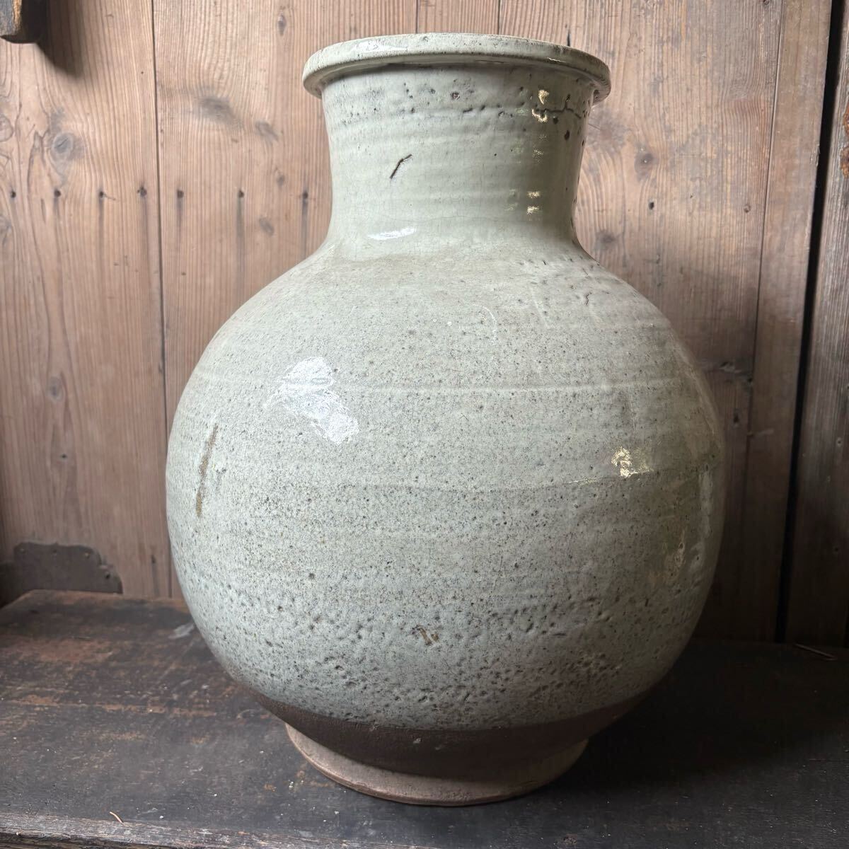 > 東北民窯《会津本郷焼糠白釉大壺》h44cmφ37cm福島県古民藝柳宗悦平清水焼李朝花器花瓶花入