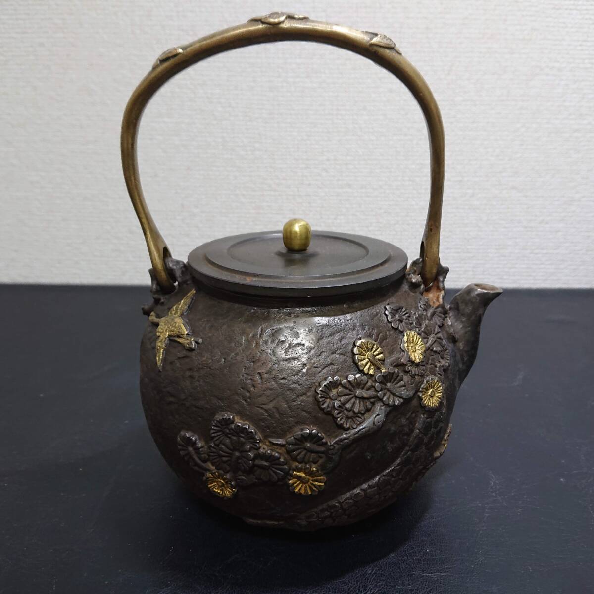 - やや汚れや傷あり 鉄瓶 茶道具 鉄器 時代物 茶器 煎茶道具 木箱無し 詳細不明品 C2
