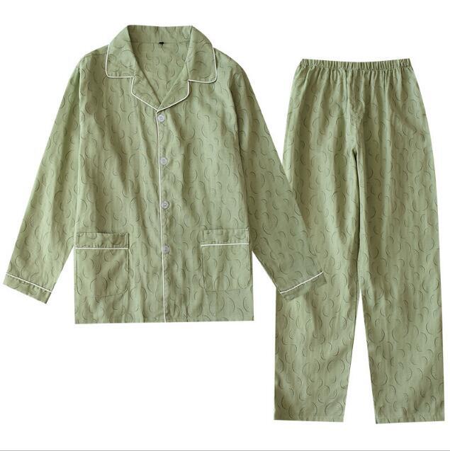 - 人気品パジャマ ガーゼパジャマ 二重 メンズルームウェア 綿100%ガーゼ 前開き 長袖 長ズボン やさしい肌触り 部屋着 春夏秋冬 グリー XL