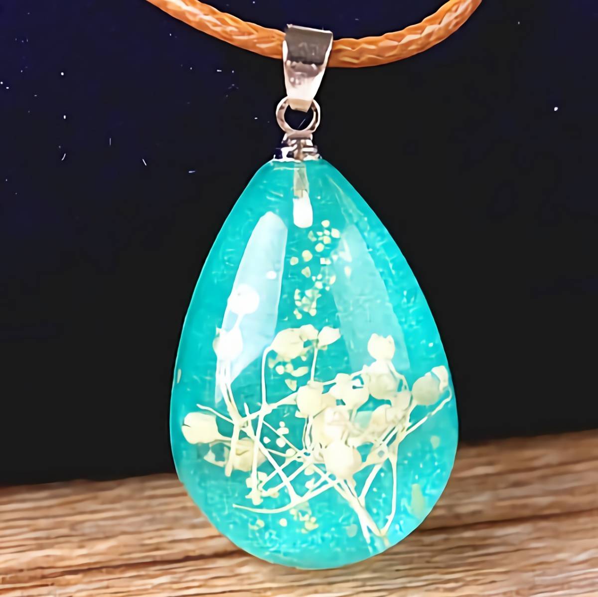 - 新品★送料無料★暗闇発光グリーン光 天然花 海の青 緑柱石アクアマリン雫紐ネックレス誕生日プレゼント旅行夏海連休ギフト国内発送