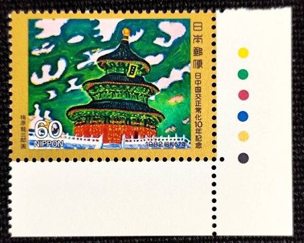 > [25070520]【日中国交正常化10年記念】単片 CMカラーマーク付「寒中天壇」梅原龍三郎 画 60円 1982年発行 美品