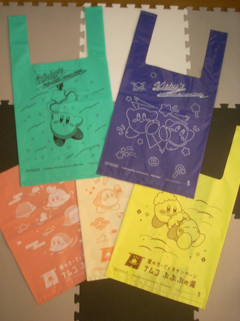 - 星のカービィ ビニール 手提げ 5種 非売品 ナムコ ぷぷぷの湯 ニンテンドー 任天堂