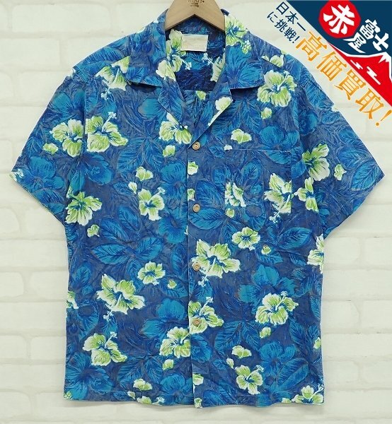 > 9T3645【クリックポスト対応】ROYAL HAWAIIAN ハイビスカス 半袖コットンアロハシャツ ハワイ製 ロイヤルハワイアン オリジナル ビンテー