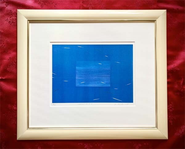 - 堀本恵美子●真作●ほりもと えみこ●版画に手彩色 4/100 直筆サインあり■タイトル『CURRENT 20-4T』■青 現代アート■コソボ国際平和展