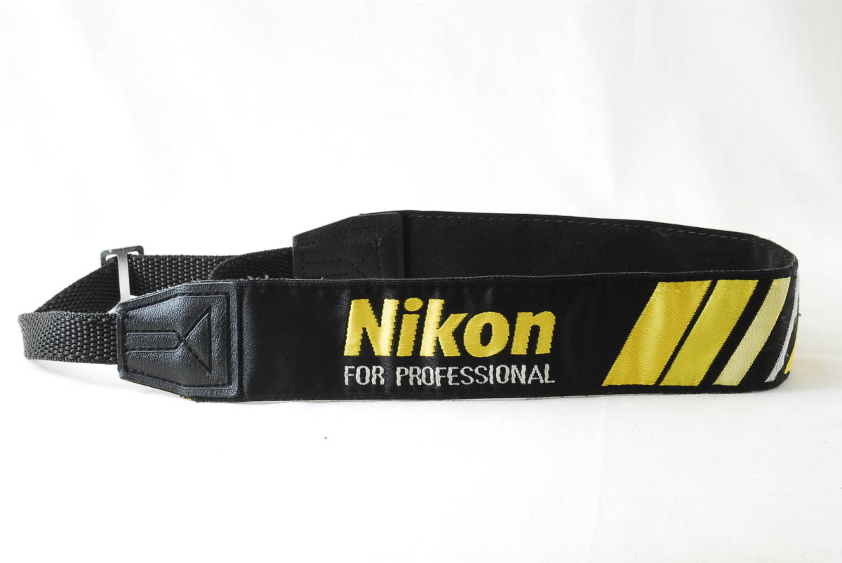 > ☆Nikon ニコン for Professional プロストラップ レンズ用 黒色(ブラック)×黄色(イエロー)NPS 超望遠 長玉用 レア プロフェッショナル☆