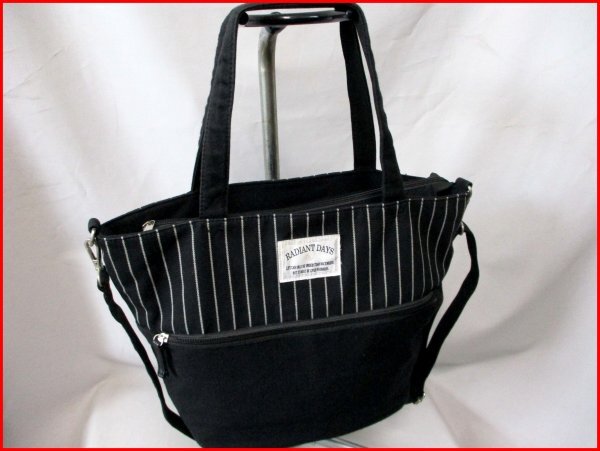 - 2way ハンドバッグ◇BK ストライプ柄 斜め掛け W40cm