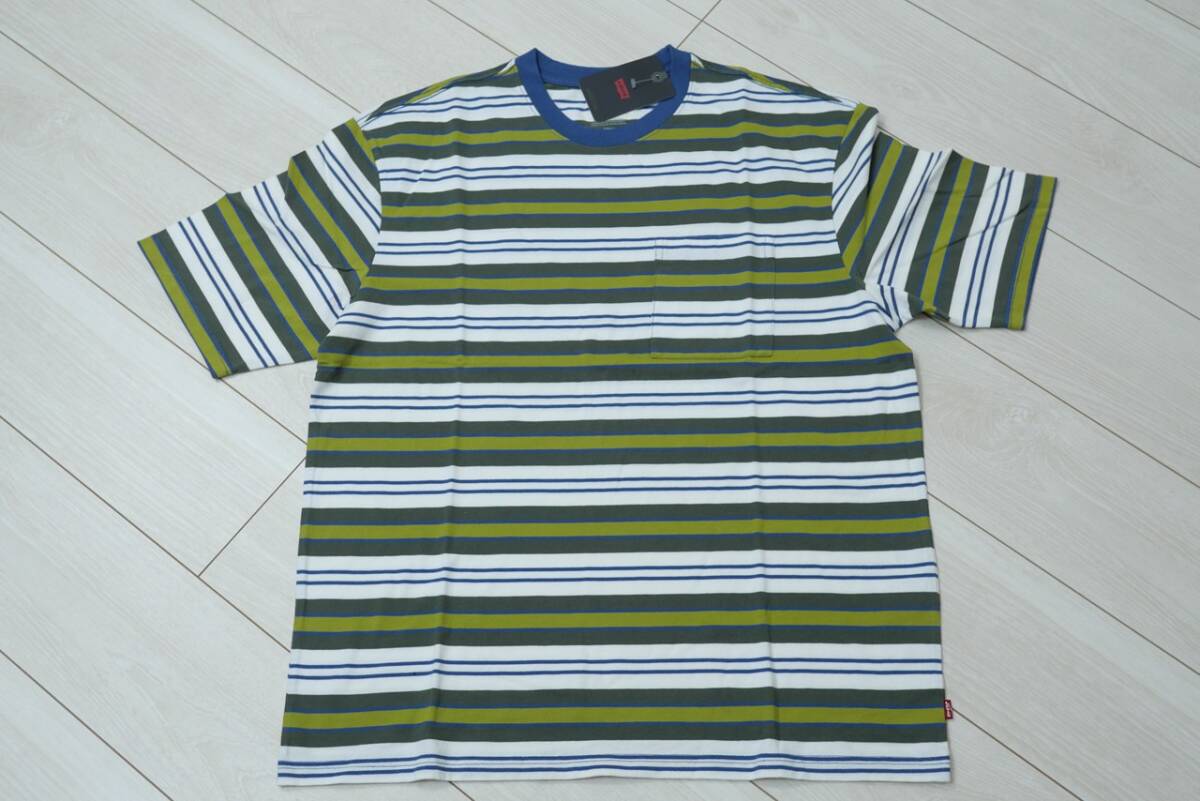 - 新品リーバイスA4890-0001 JP Mサイズ/US Sサイズ ステイルーズ ポケット 半袖Tシャツ マルチボーダー STAY LOOSE