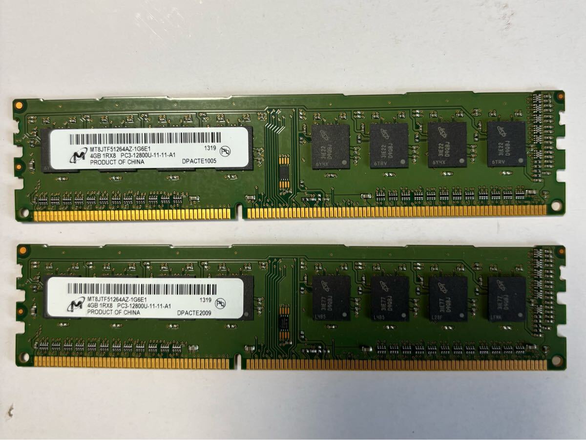 - Micron メモリ 4GB 1Rx8 PC3-12800U-11-11-A1 4G×2枚 計8GB