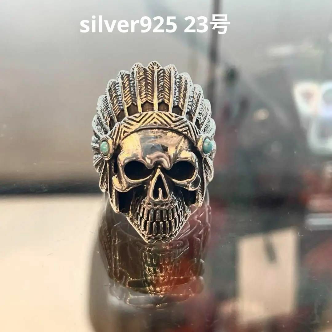 > シルバー925 リング 23号 スカル ヘッド インディアン ジュエリー 指輪 ターコイズ トルコ石 シルバーアクセサリー SV925 ドクロ 骸骨
