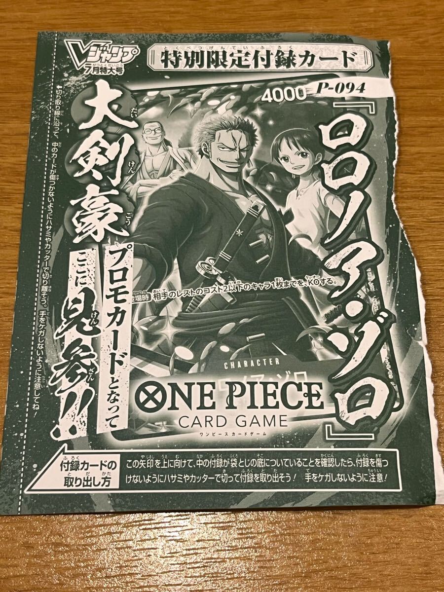 - Vジャンプ 2025年 7月号 ONEPIECE ワンピース カードゲーム ロロノア・ゾロ 単品 数量6個まで購入可能