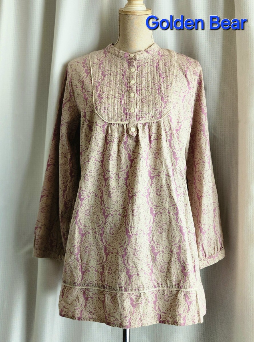 - Golden Bear 長袖コットンチュニック ベージュとピンクの柄 ピンク系