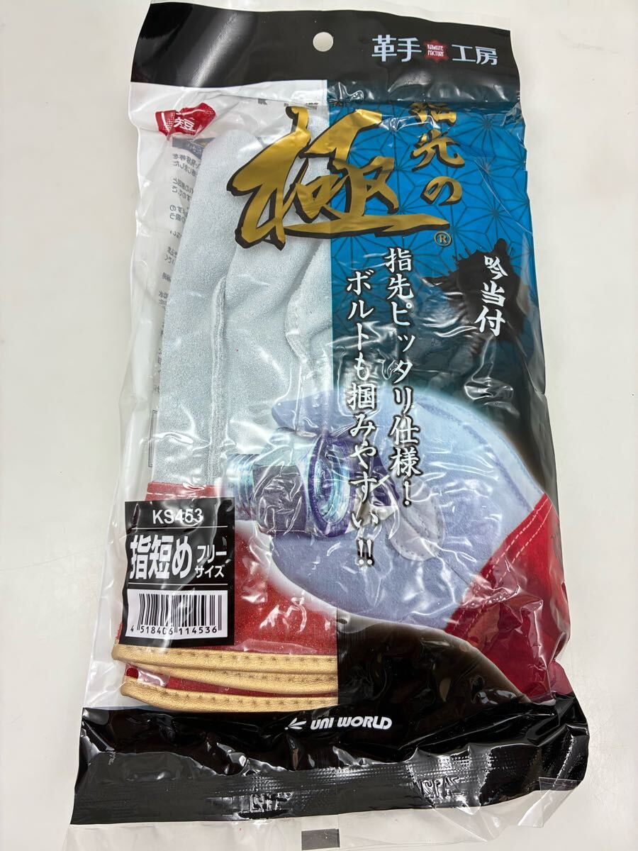 - ユニワールド KS453 フリーサイズ 鳶 革手工房 指先の極 吟当付 背縫い革手袋 指短め 牛革 作業用手袋 未使用 自宅保管品 ゆうメール発送