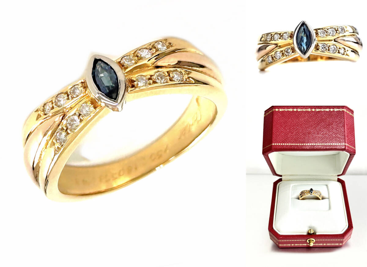 - レア 極美品 CARTIER カルティエ K18 ゴールド スリーカラー マーキス サファイア ダイヤモンド リング パヴェ 指輪 ケース付き