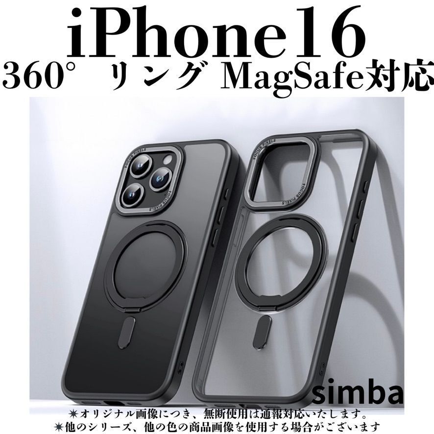 - iPhone 16 ケース ブラック360°回転リング バンカーリング スマホリング スタンド