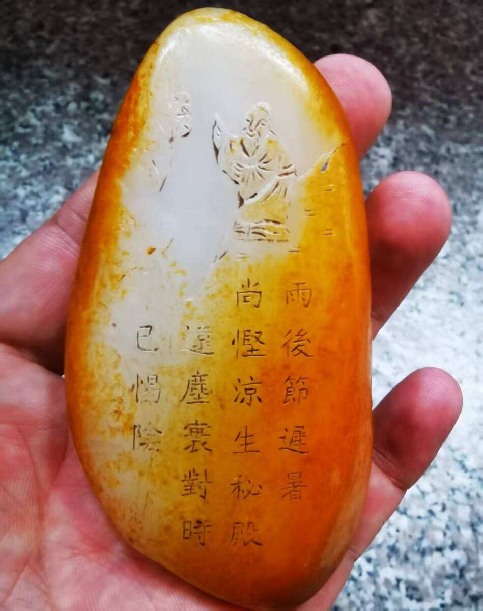 - 和田玉 原石 秘藏 清代 老玉 唐詩・山水人物の原石 新疆 唐物 古玉彫 天然石 稀少珍品 古美術 古賞物 古置物 旧蔵 玉佩 裝身具 吊墜7.5