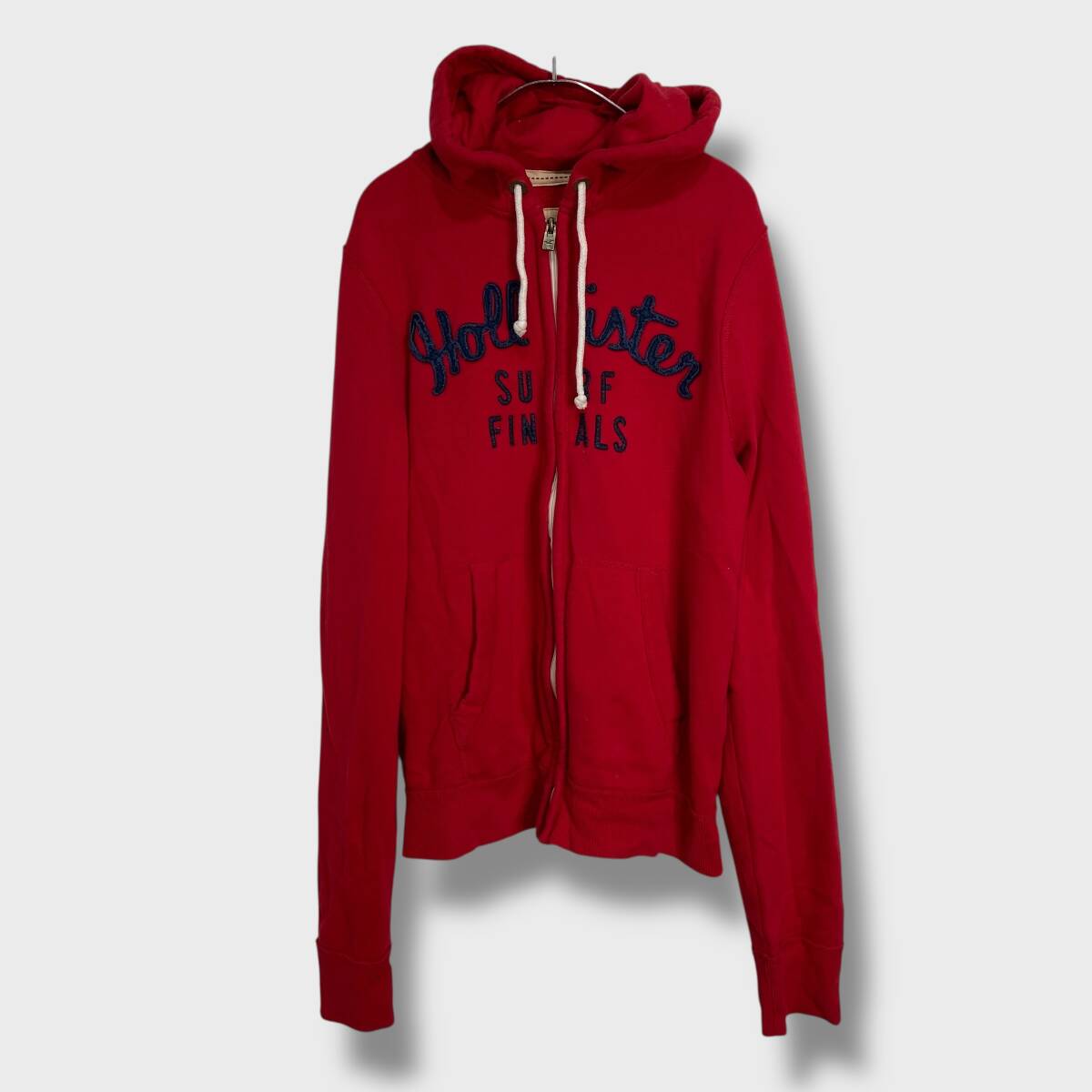 - 送料無料☆HOLLISTER☆ホリスター☆ジップパーカー☆ワッペンロゴ☆赤☆XL☆G25M