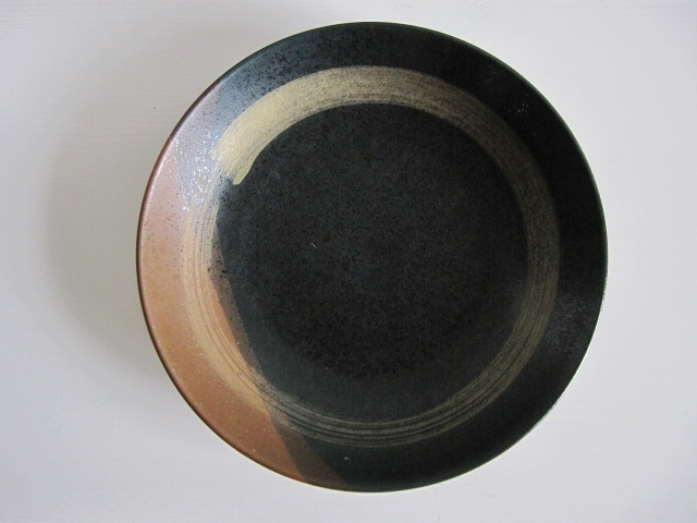 - 盛鉢 寿司 魚 ブラック 金筆 模様 お皿 プレート 料理 キッチン 和食器 丸型 ラウンド