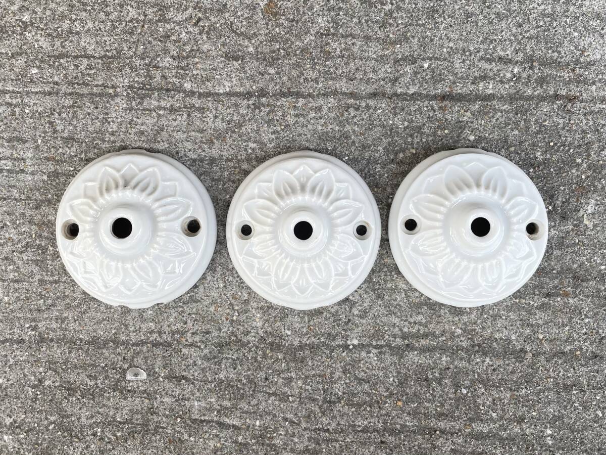 - 3個セット!フランス アンティーク 陶器 シーリング ローゼット 磁器 シーリング カバー 北欧 カフェ アトリエ