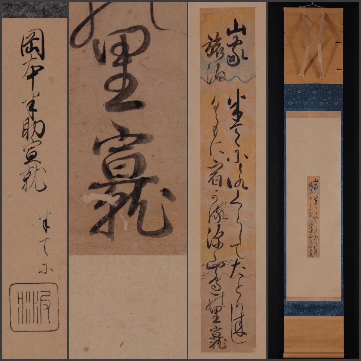 - 【模写】吉】12581 岡本半介 和歌 古筆極札あり 岡本宣就 上泉流兵学 井伊直政 近江国 彦根藩 滋賀県 書 茶掛け 茶道具 掛軸 掛け軸 骨董品